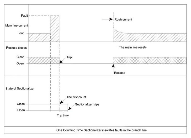 Normally, the sectionalizer is applied in conjunction with an upstream recloser or circuit breaker.Refer to the diagram.