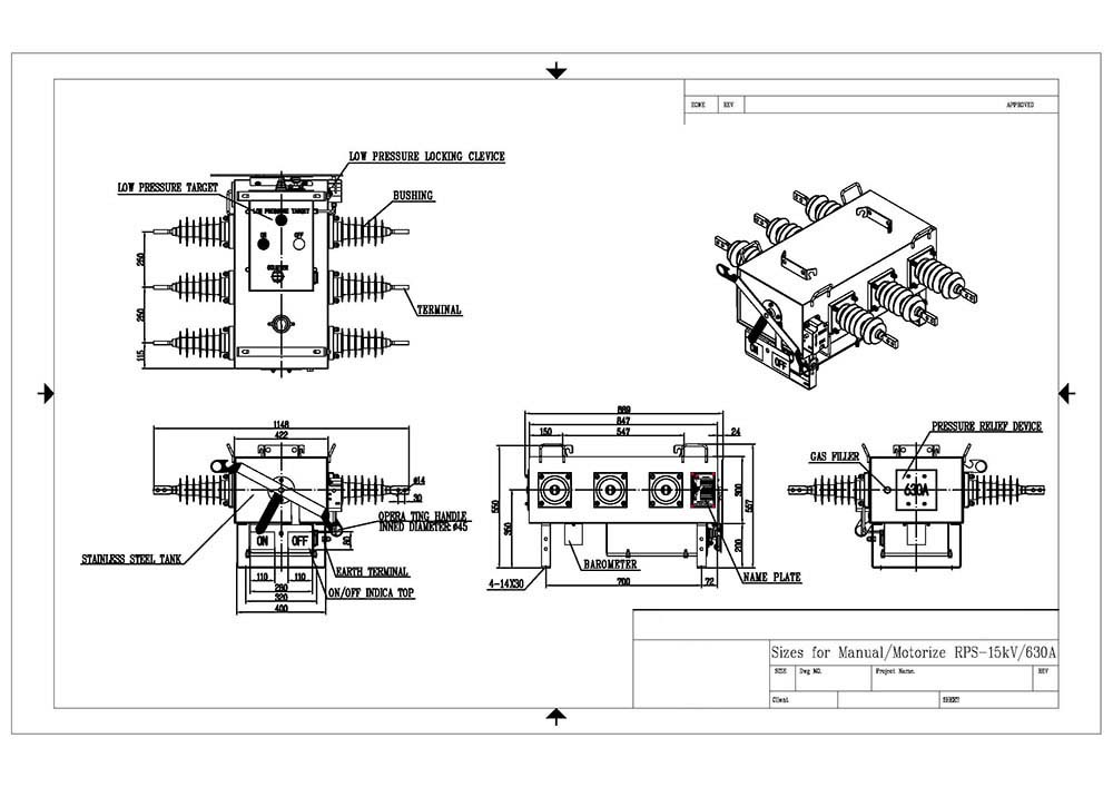 It has excellent load breaking and fault making capacity and satisfies the isolation requirements specified for load break switch. The earthed metal tank prevents all possible leakage currents across an open switch. RPS can be manually operated or motor operated for local and remote electric control, upgraded.