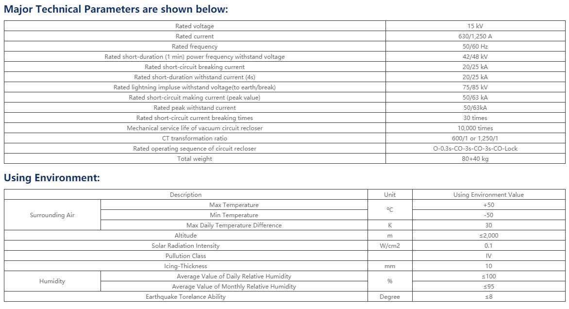 The 40.5kV auto recloser are recently-developed pole-mounted intelligent vacuum circuit reclosers of a new generation, which absorb the advanced domestic and foreign technologies adopted by our company, embody the design concept of being "intelligent, energy-saving, environemntally-friendly and maintenance-free". This product integrates such functions as control, protection, measurement, fault positioning, online monitoring and synchronous closing. With full functions and high digitalized and intelligent degree, they are top choices for equipment of power distribution network automation and intellectualization process.