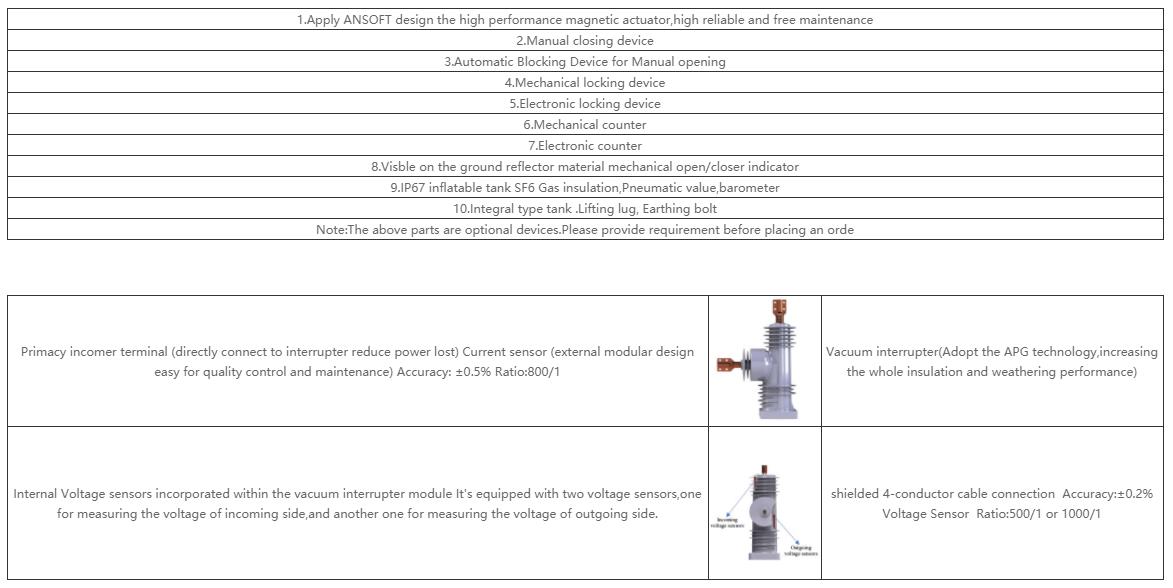 Rcw+ type 38kV auto circuit recloser is ANSI/IEC standardized plus design products which is equipped with one magnetic actuator mechanism, one manual device for closing, opening and locking, 3 current sensors, max 6 voltage sensors, with more functional like protection curves + curves programble, coodination logics + logics programble, programble communication protocols, PC software, APP control tool, etc... with RWK352 controller,....