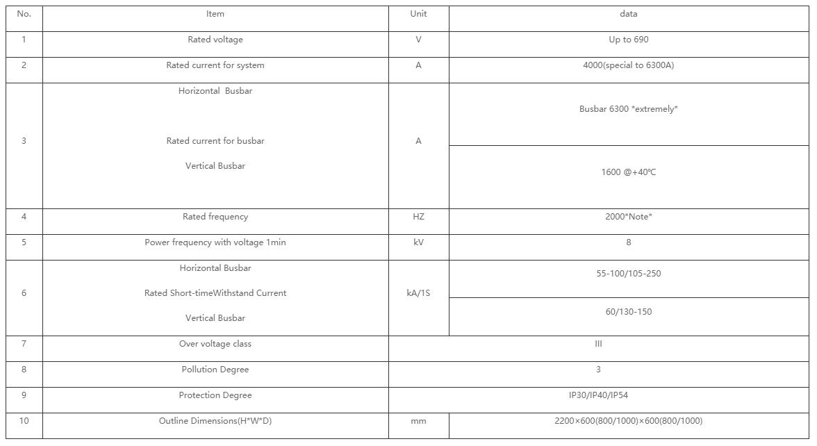 1. The current of vertical busbar is extremely up to2000A@+35℃,(+40℃with cooler) .