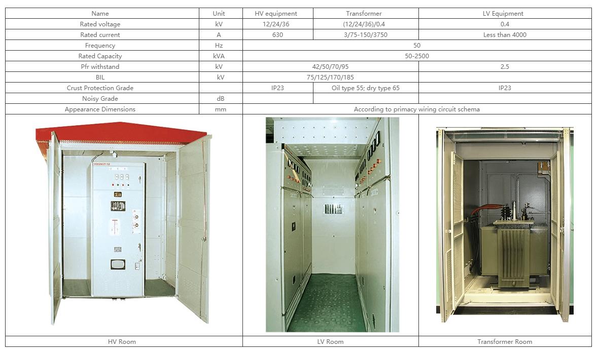 connection scheme. This series substation is suitable for neighborhood unit, hotel, large-scale work site and high building that the voltage is 12kV /24kV/36kV/40.5kV, the frequency is 50Hz and the capacity is under 2500kvA.