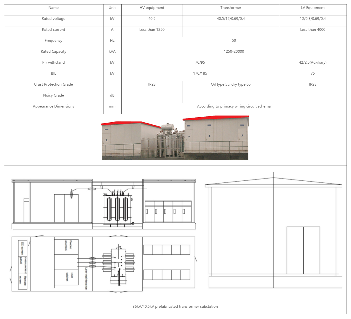 Main technical specifications for 36kV/40.5kV Prefabricated Substation