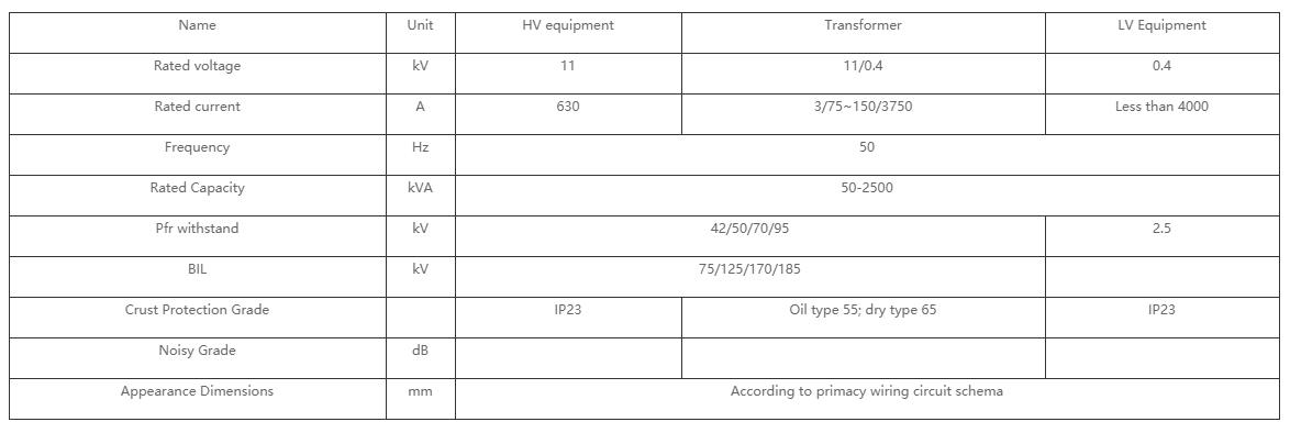 This series substation is suitable for neighborhood unit, hotel, large-scale work site and high building that the voltage is 12kV /24kV/36kV/40.5kV, the frequency is 50Hz and the capacity is under 2500kvA.