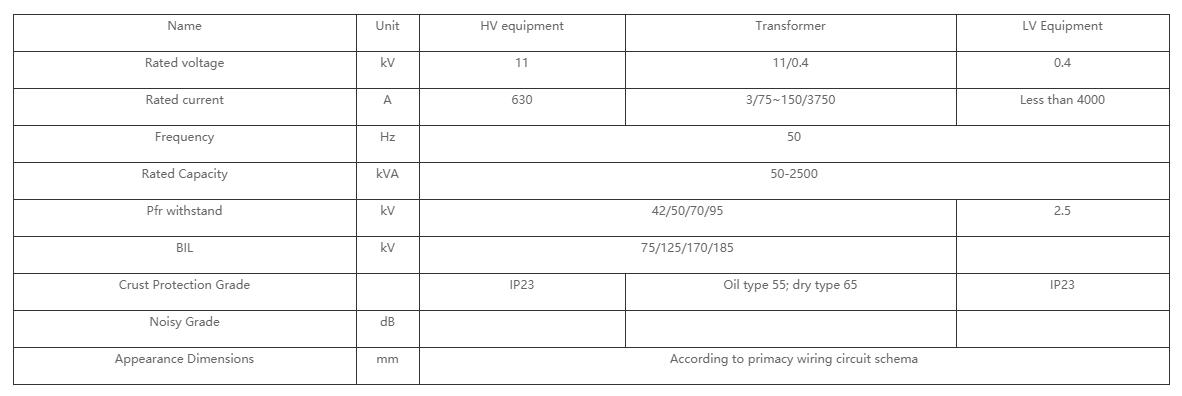 The HV side use charge switch or vacuum circuit breaker. The transformer could be oil type hermetically-sealed type and dry type.
