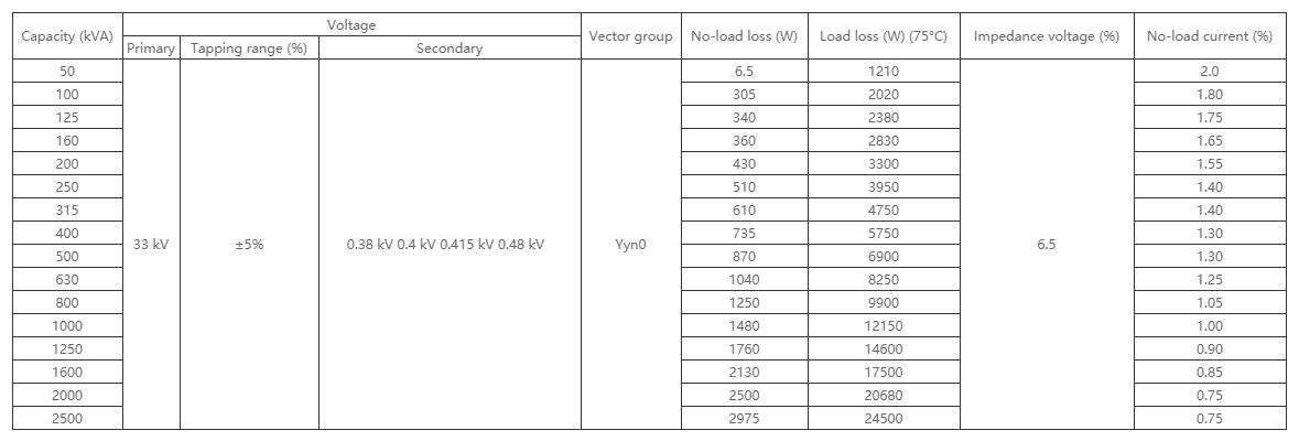 3.3kV-36kV transformers are mainly made of iron core and windings which are placed in the oil tank that filled with insulating oil.