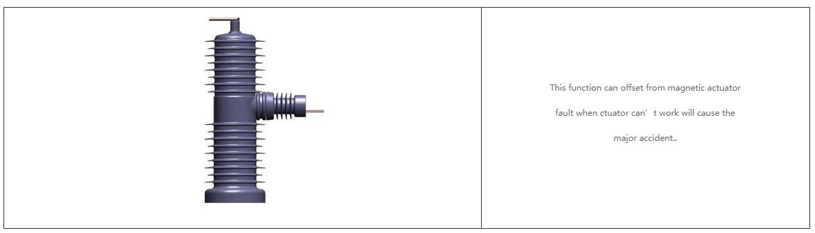 Primarcy incomer terminal(directly connect to intterruter reduce power lost). Vacuum interrupter(Adopt the APG technology with external silicone rubber mold presure covering,increasing the whole insulation and weathering performance) Outlet bushing (external modular design easy for quality cotrol amd maintenanace).