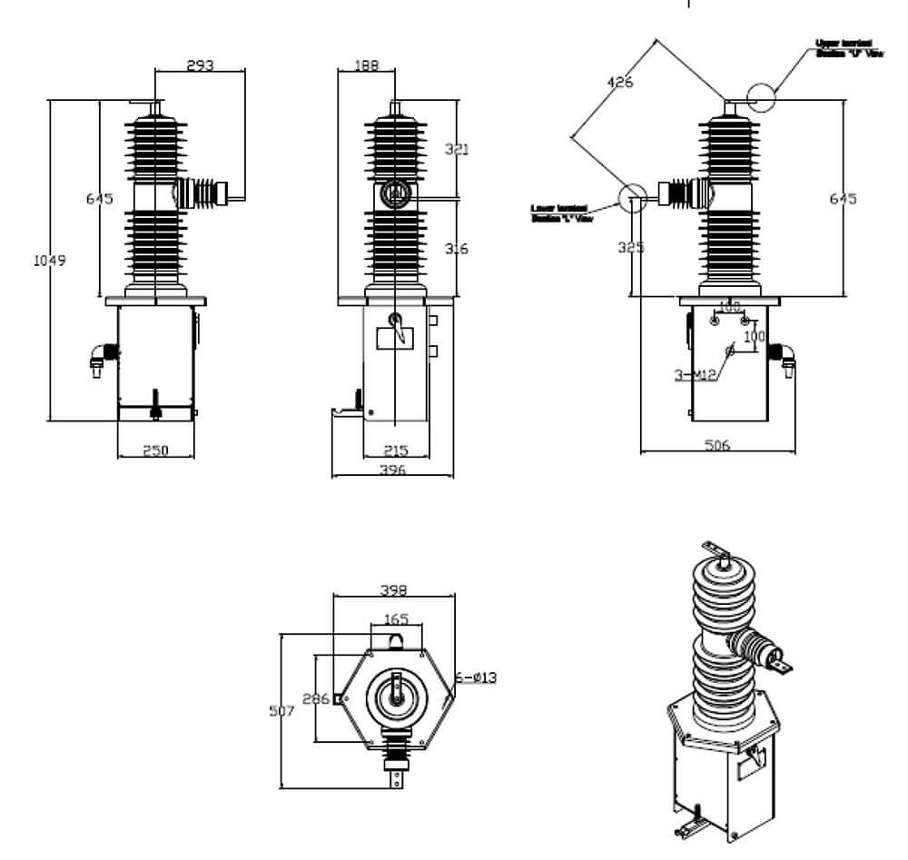 Vacuum interrupter(Adopt the APG technology with external silicone rubber mold presure covering, increasing the whole insulation and weathering performance)